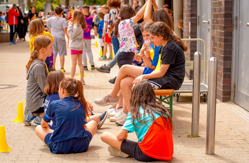 Dabei wurden Sie nicht nur von Ihren Verwandten, Bekannten, Freunden und vielen Pädagog*innen unserer Schule angefeuert, sondern auch durch unseren Erzieher-DJ Herrn Krause mit Musik motiviert. Der Förderverein unserer Schule unterstütze mit Getränkespenden und unser Sponsorenpartner Schreberjugend e.V. mit einem Mitmach-Stand.